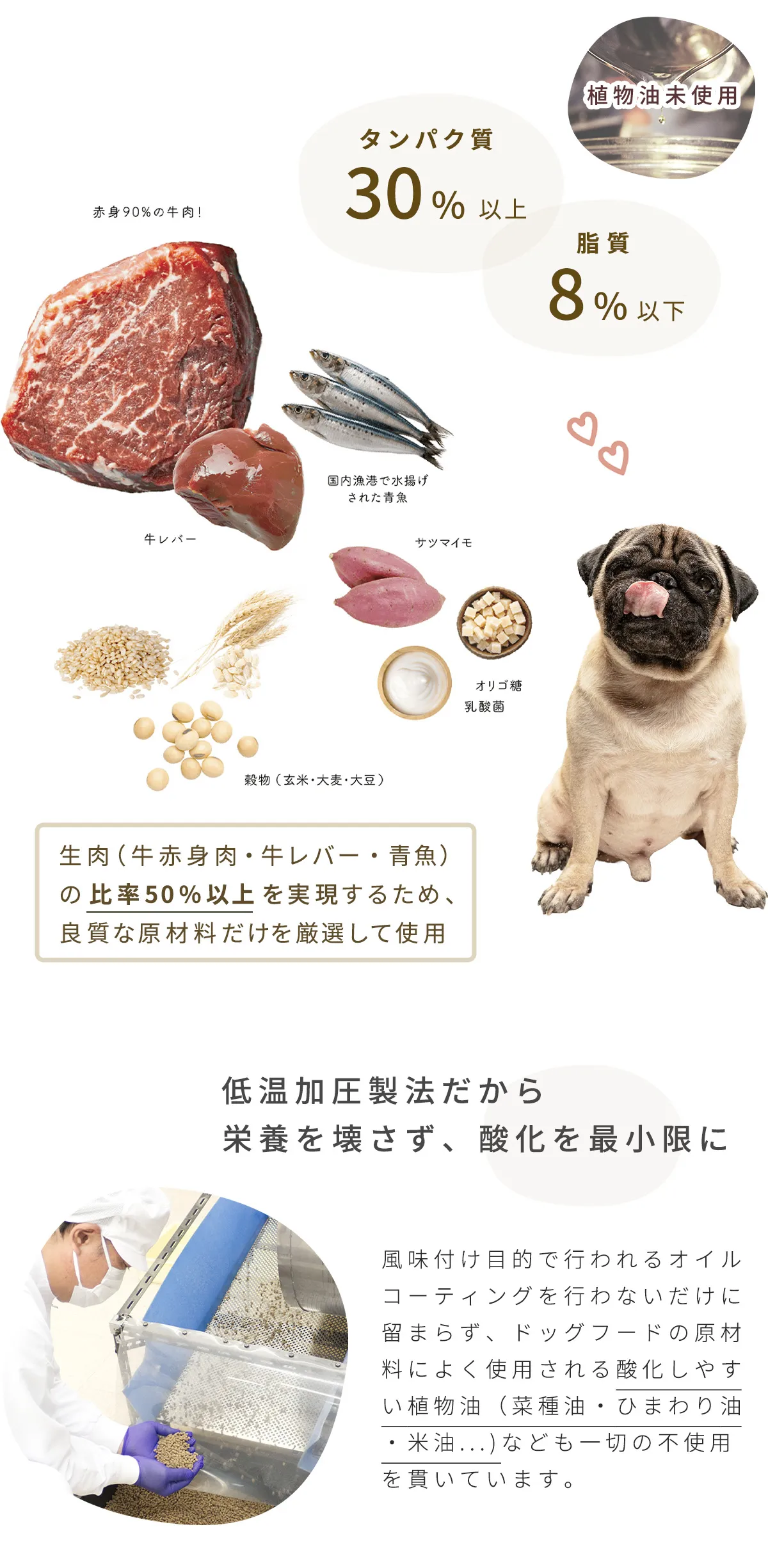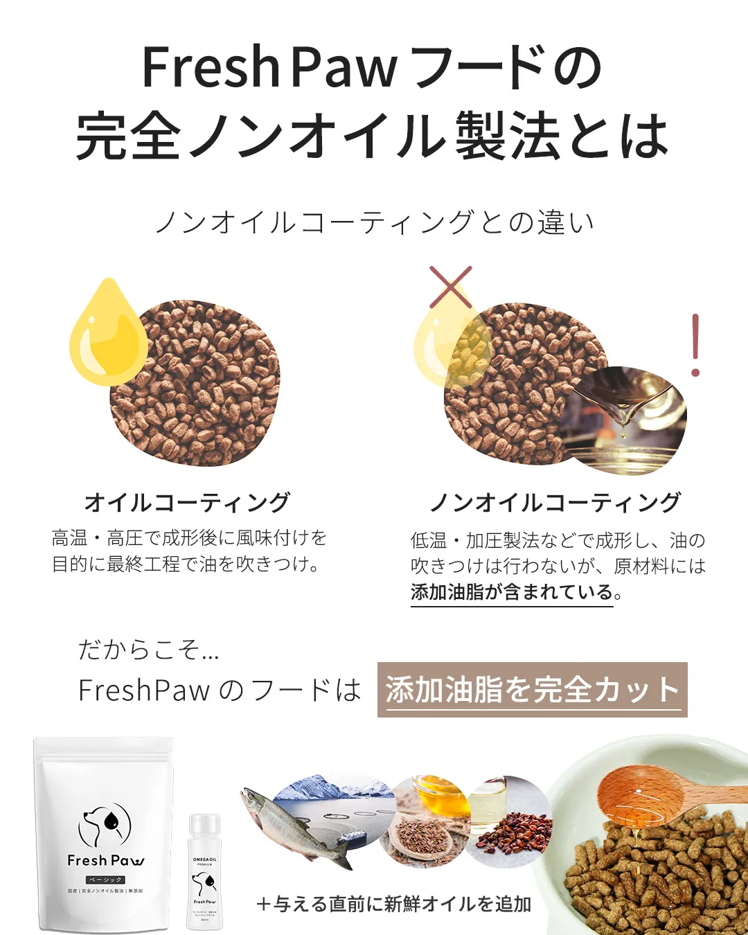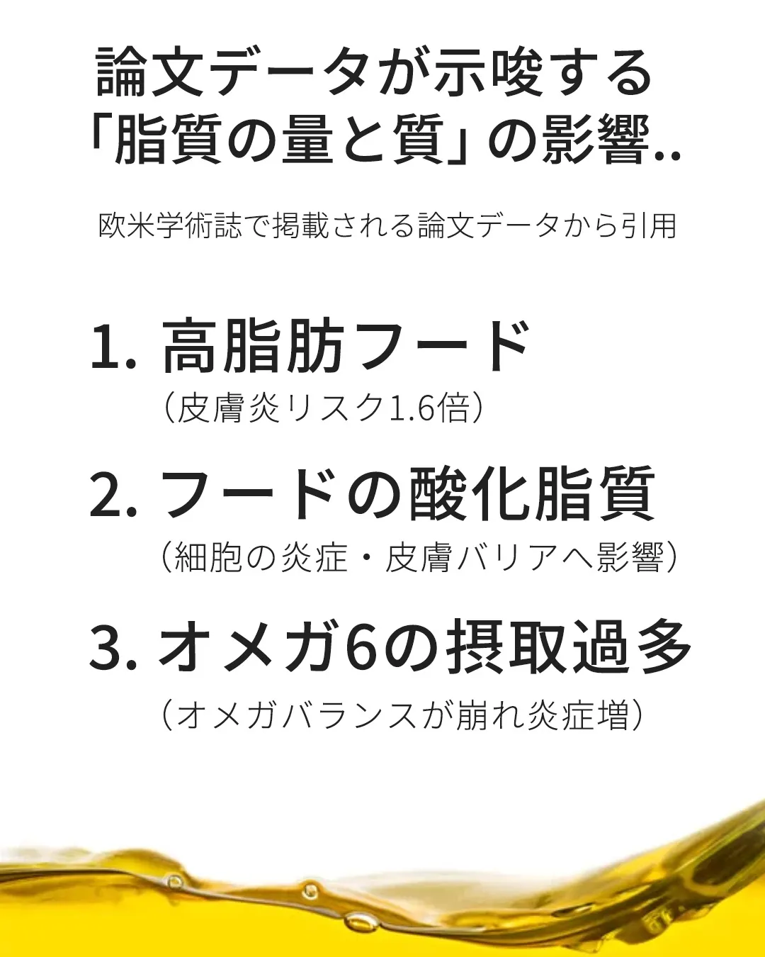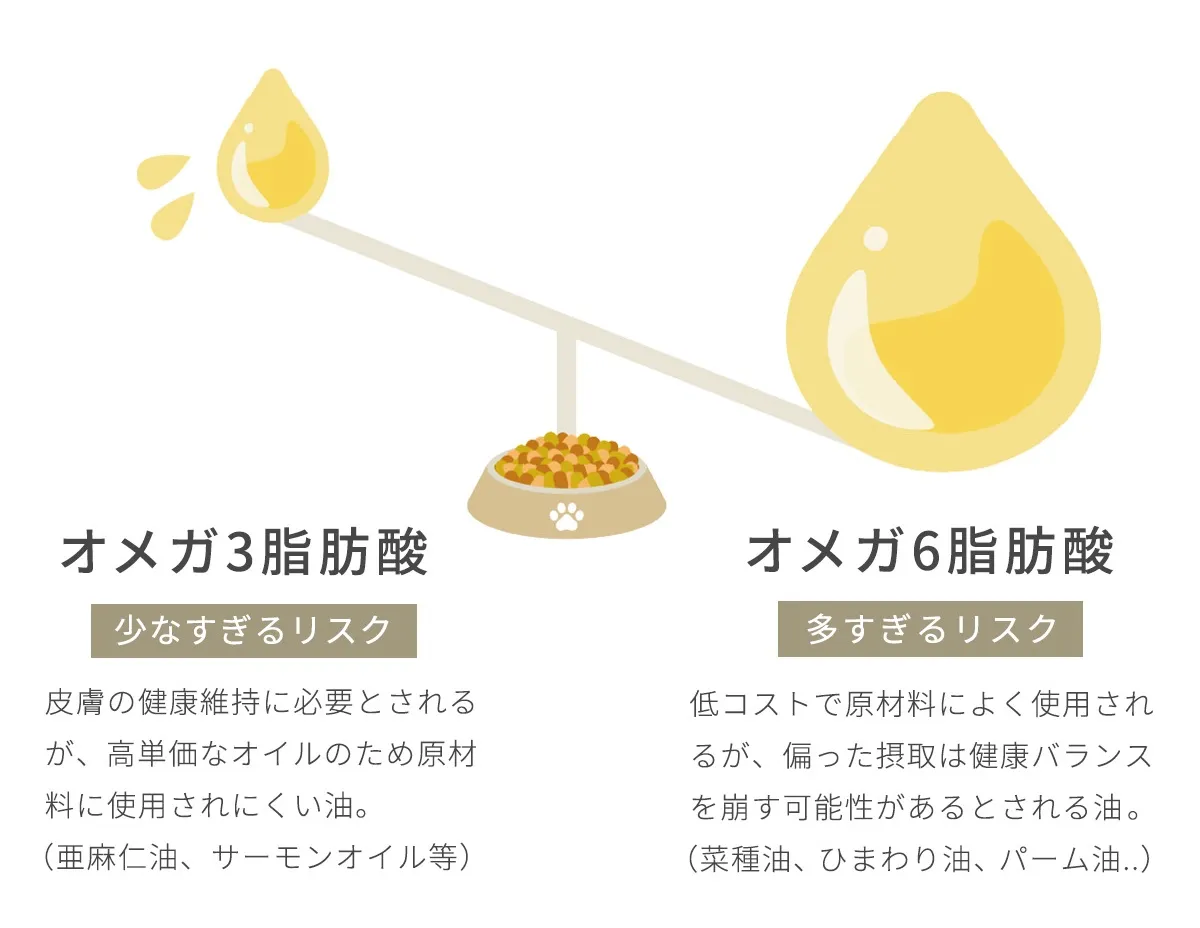 人でも揚げ物を摂り過ぎると体調が乱れやすいように、酸化した脂質やオメガバランスの崩れは、愛犬のコンディションに余計な負担をかける恐れがあります。